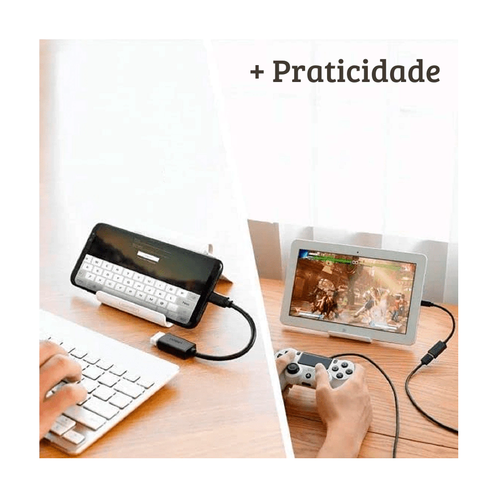 O cabo OTG adiciona uma porta USB A fêmea padrão ao laptop, ao tablet e ao smartphone para você conectar uma variedade de acessórios externos como: mouse, teclado, controle de jogos, pen-drive e etc.