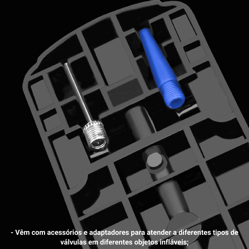 É compacto e eficiente projetado para inflar os seus produtos designados com facilidade;