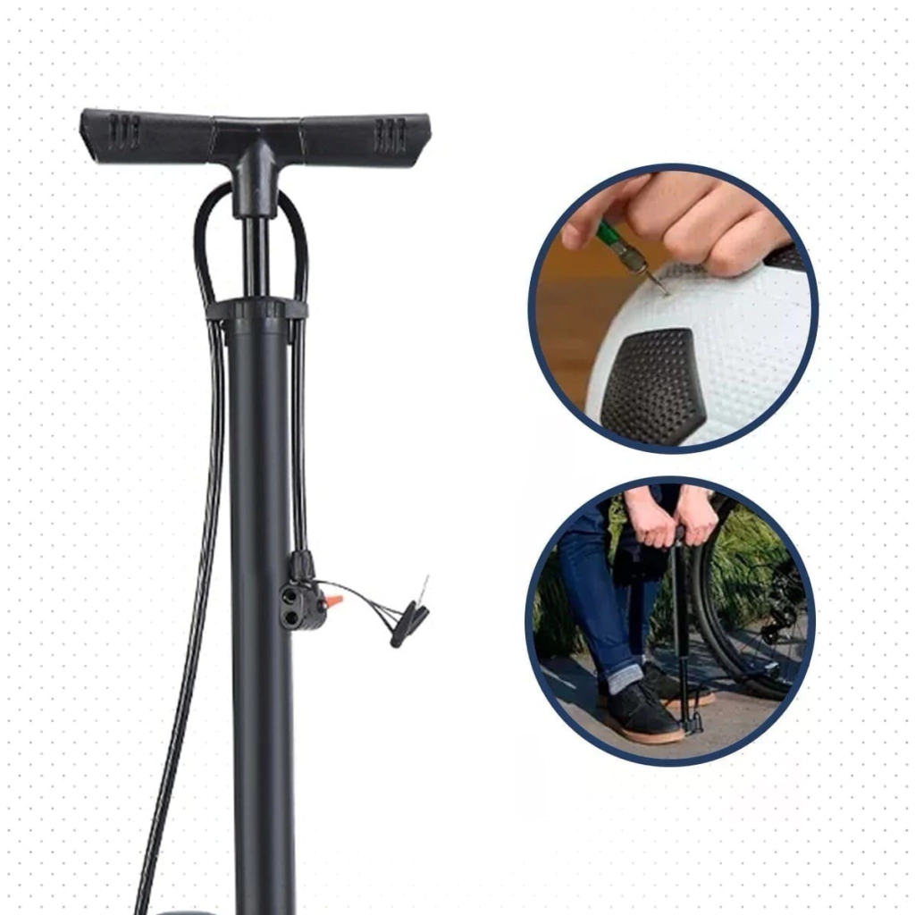Benefícios: - Leve; - Multiuso; - Indispensável para eventuais emergências; - Vai com 3 bicos adaptadores para encher bola, piscina infantil, colchão inflável e etc - Possui duas pontas, uma para encher bico fino (válvula presta) e bico grosso (schrader) de bikes, motos e carros