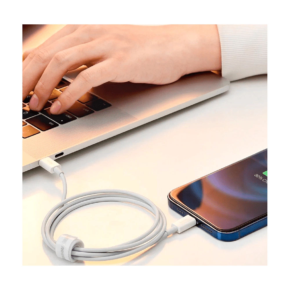 O cabo USB-C para Lightning Baseus permite que você carregue seu telefone rapidamente. Também permite transferir arquivos em velocidades de até 480 MB/s. Durável e resistente a danos - servirá perfeitamente por um longo tempo.