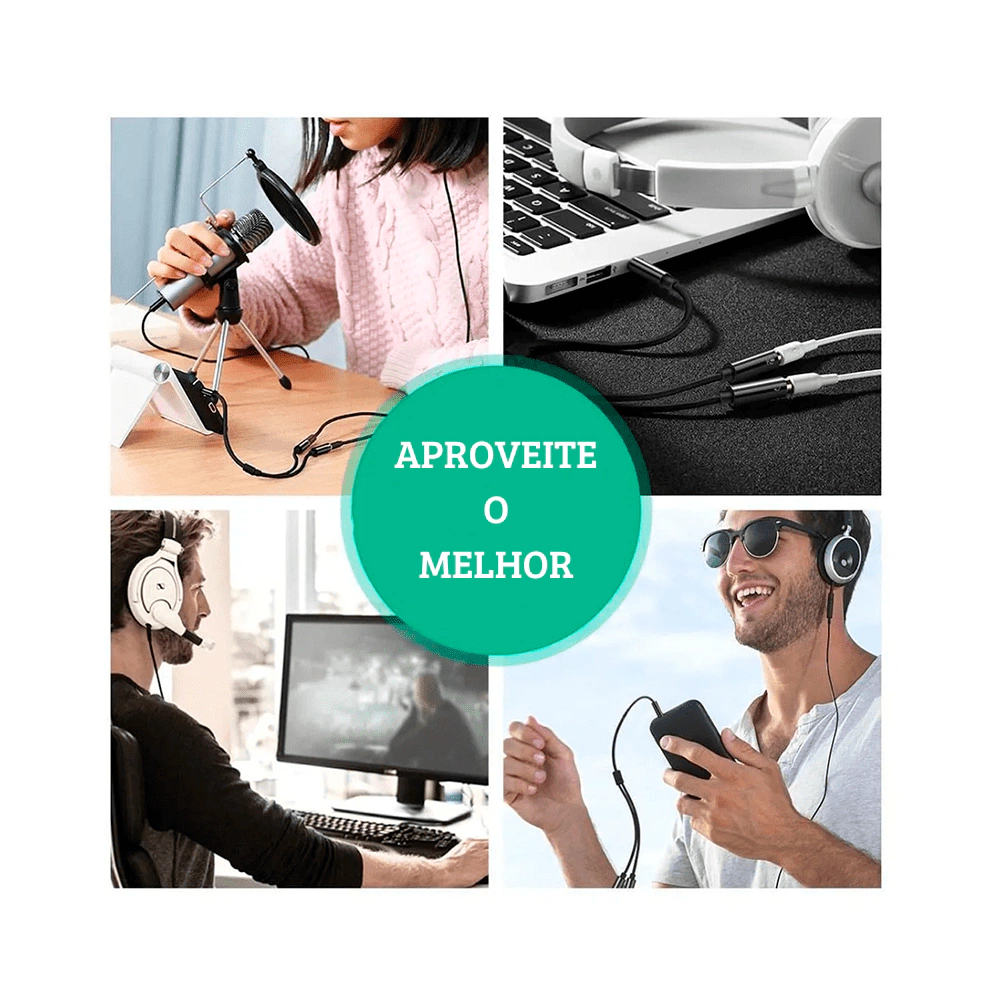 - 1 Cabo divisor de áudio p2 para p2 microfone + p2 fone