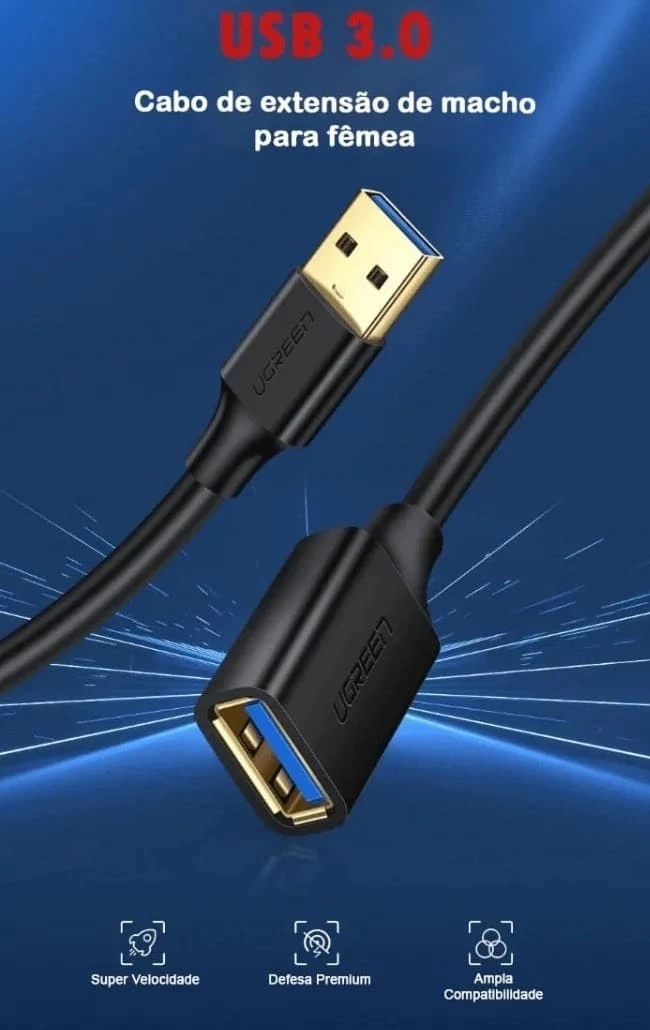 O cabo de extensão de USB UGreen foi projetado para ampliar a conexão entre o seu computador/ laptop/ tablet/ qualquer outro dispositivo equipado com USB com diversas opções de periféricos com USB como HUB USB/ impressora/ leitor de cartão/ adaptador de energia/ adaptador bluetooth/ flash drive/ fone de ouvido/ scanner/ disco rígido/ mouse/ teclado dentre outros de forma muito rápida e sem perda de dados.