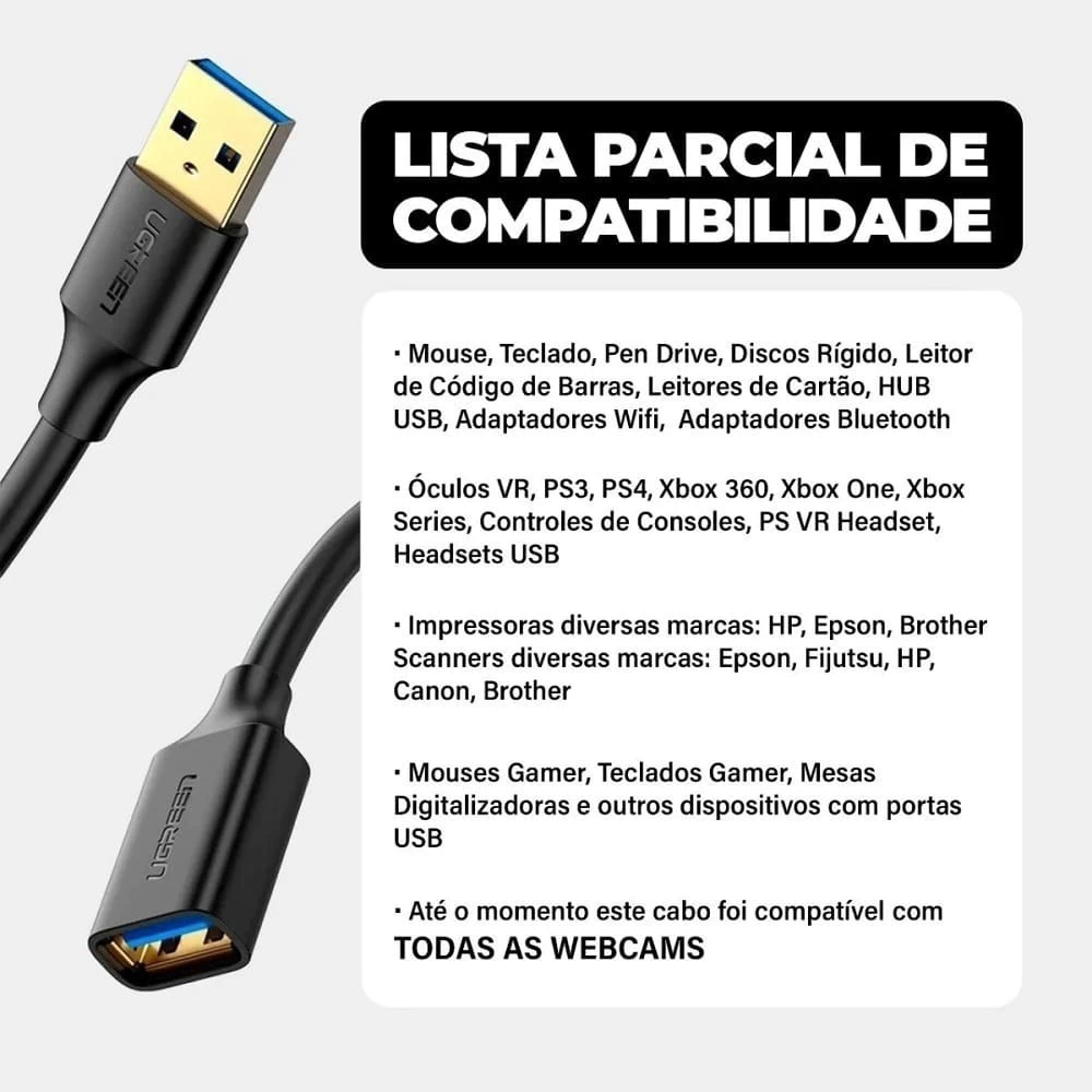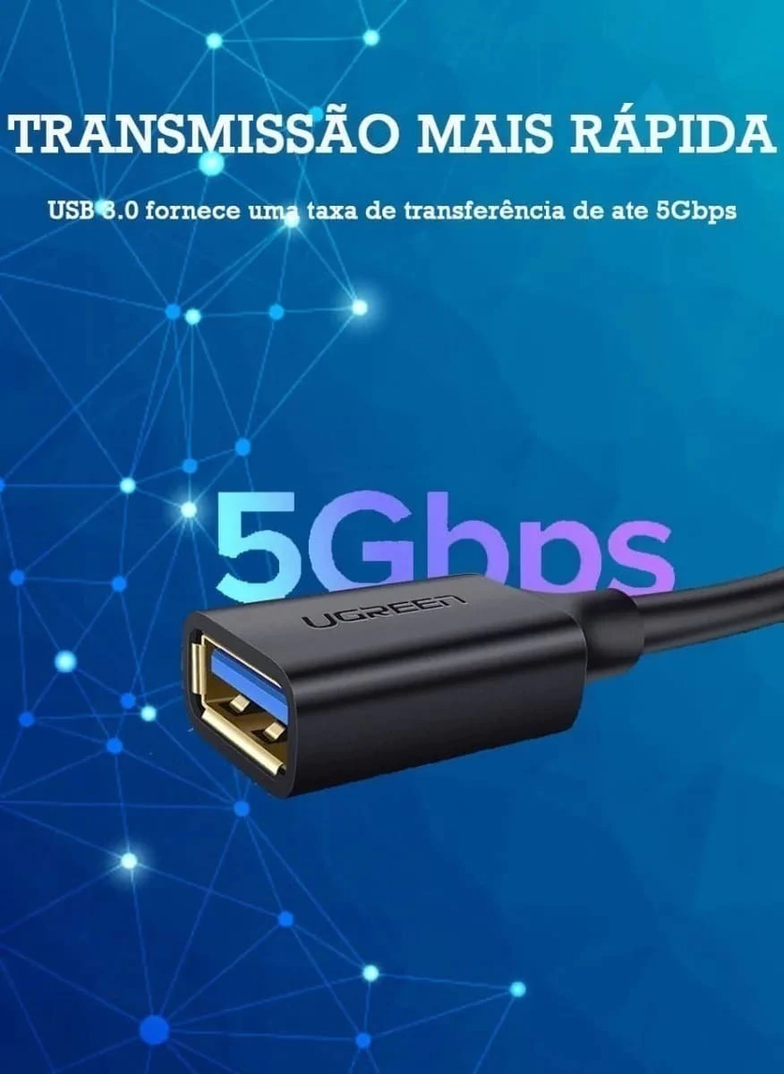 O cabo de extensão de USB UGreen foi projetado para ampliar a conexão entre o seu computador/ laptop/ tablet/ qualquer outro dispositivo equipado com USB com diversas opções de periféricos com USB como HUB USB/ impressora/ leitor de cartão/ adaptador de energia/ adaptador bluetooth/ flash drive/ fone de ouvido/ scanner/ disco rígido/ mouse/ teclado dentre outros de forma muito rápida e sem perda de dados.