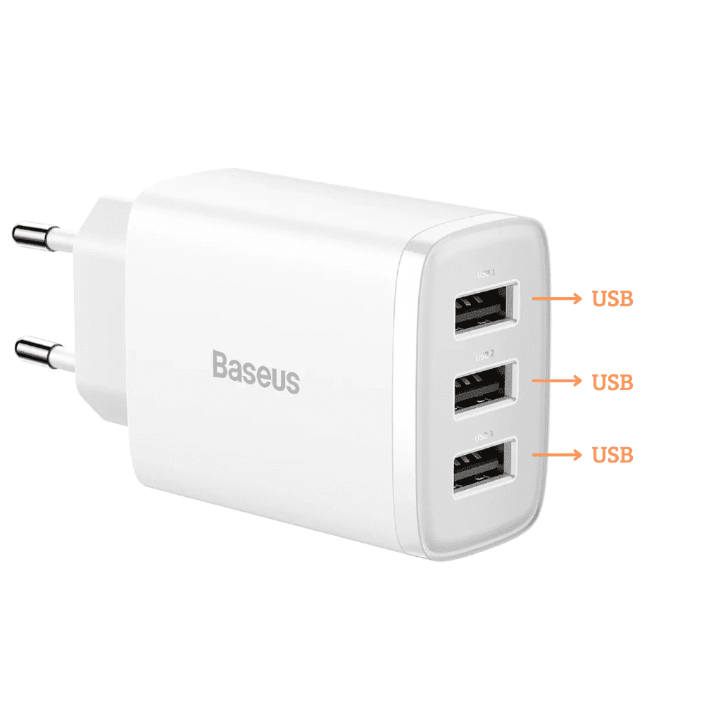 - Perfeito para viagens e trabalho, com apenas 1 carregador você consegue carregar até 3 dispositivos simultaneamente;