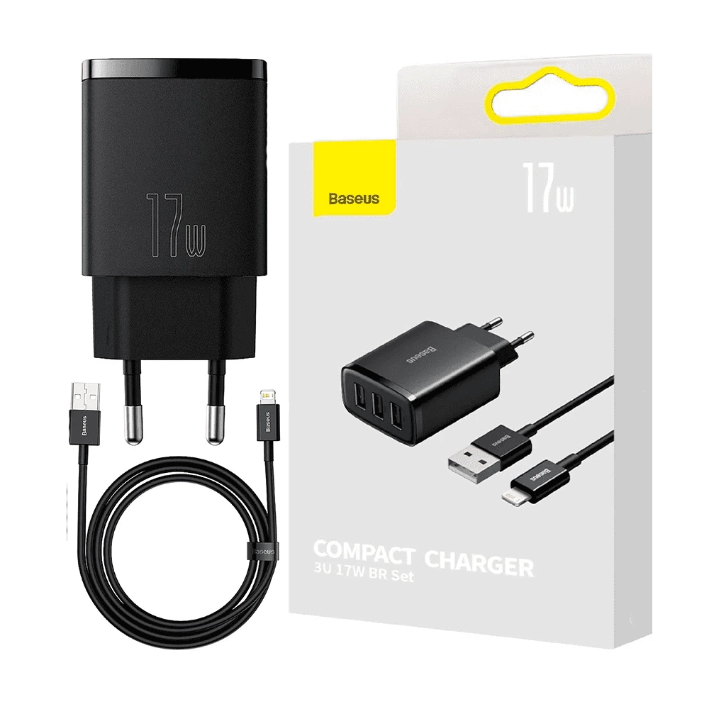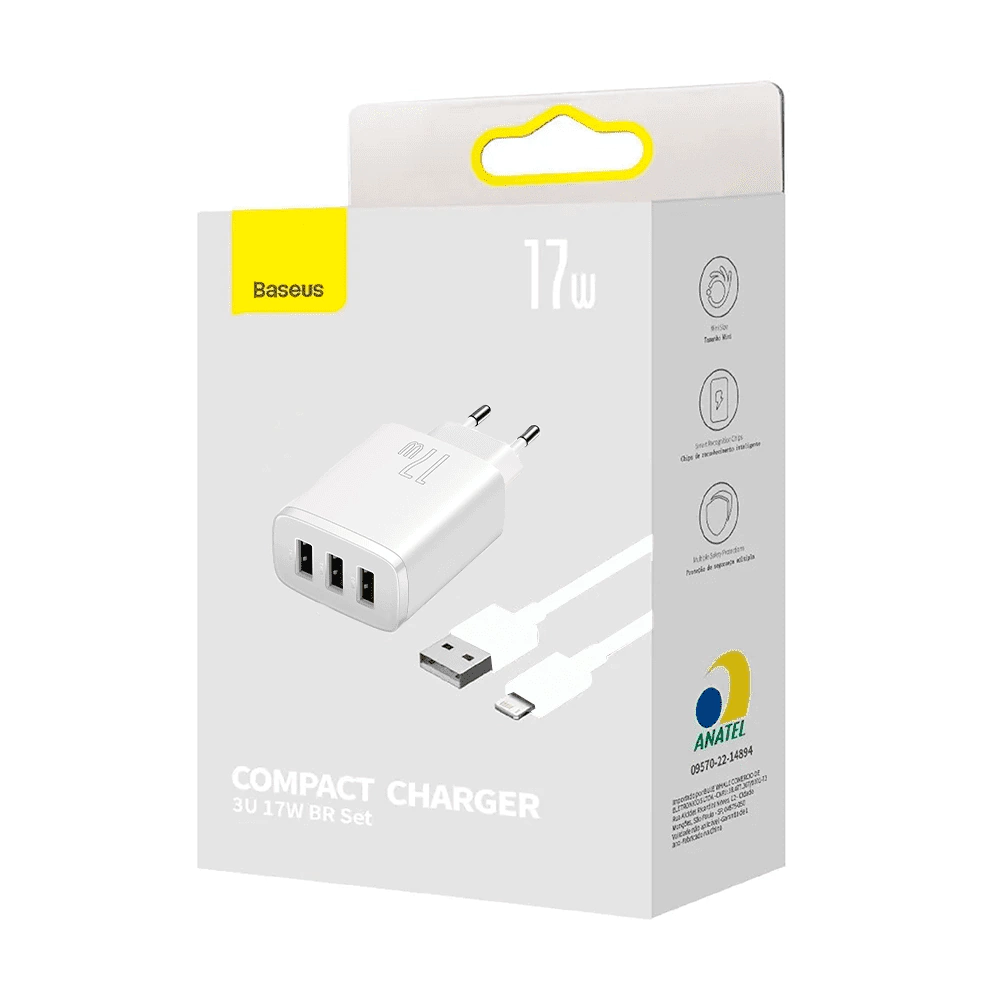 Carregador Rápido 3x USB 17W + Cabo lightning Baseus