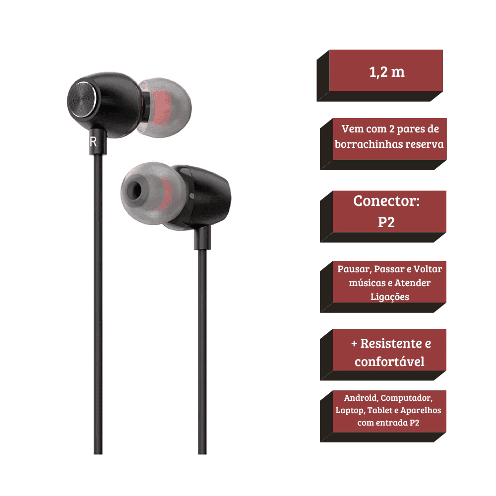 - Ouça suas músicas com muito mais qualidade. Compatível com todos os modelos de celulares, tablets, notebooks que possuem entrada P2 3.5mm;