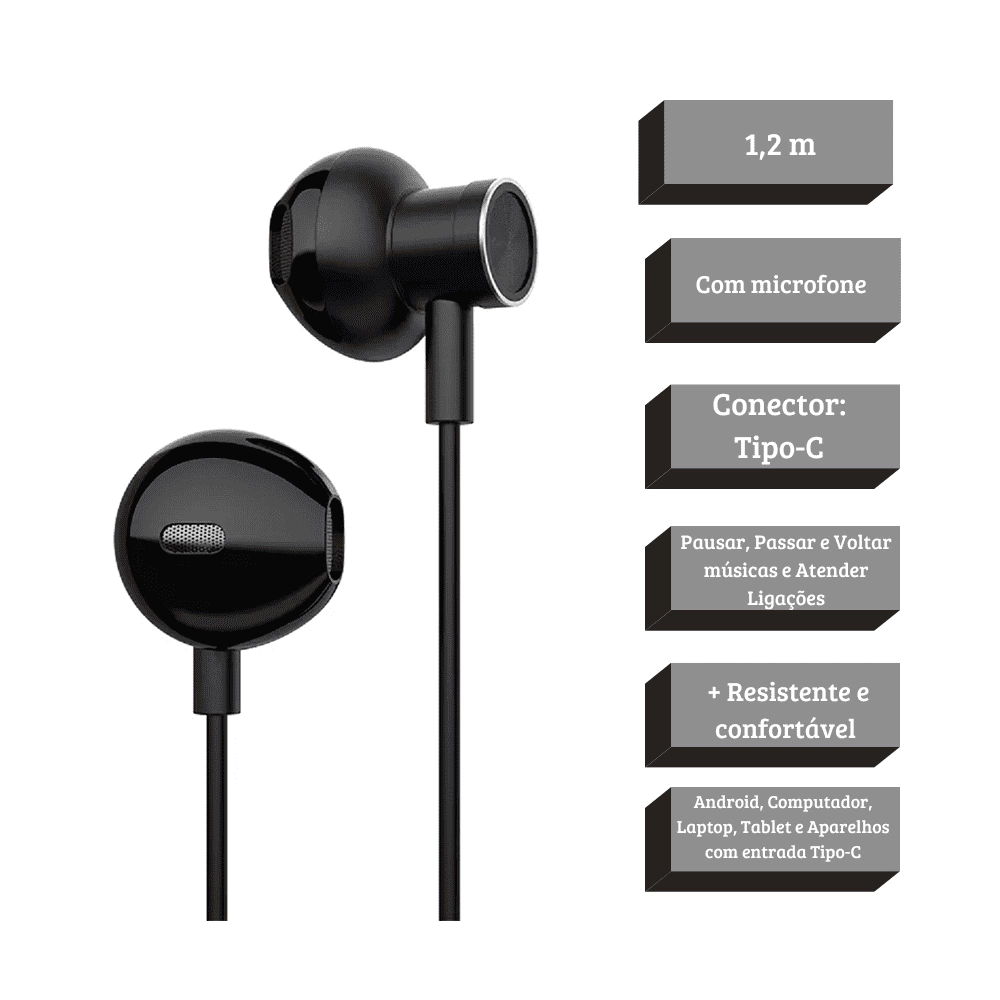 - Ouça suas músicas com muito mais qualidade. Compatível com todos os modelos de celulares, tablets, notebooks que possuem entrada Tipo C;
