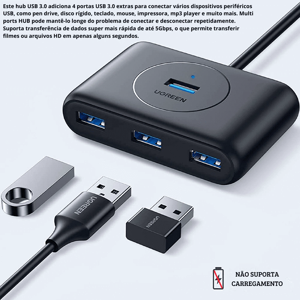 - Modelo: Hub 4x Portas USB 3.0 5Gbps