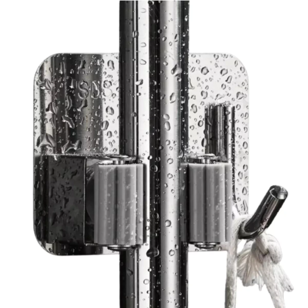 A instalação é simples e rápida com adesivo autocolante. Ideal para espaços pequenos, o suporte economiza espaço enquanto oferece uma solução inteligente para manter o ambiente arrumado.