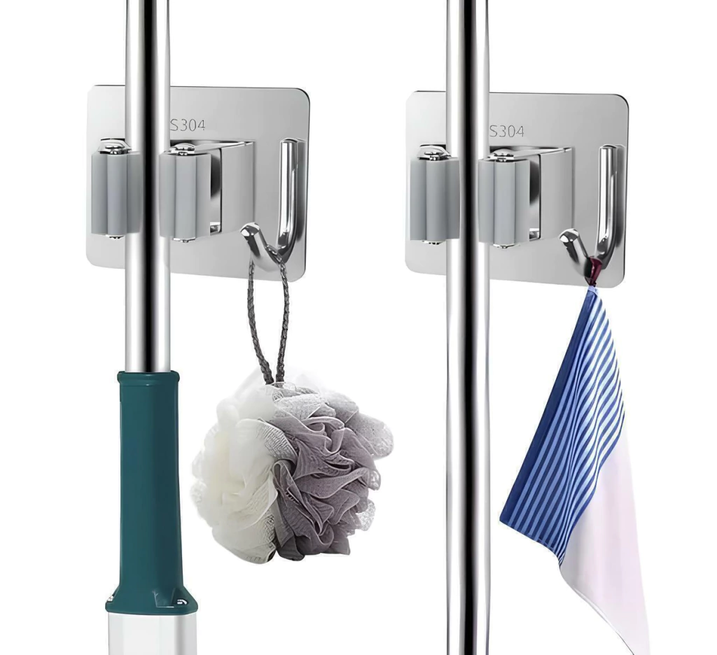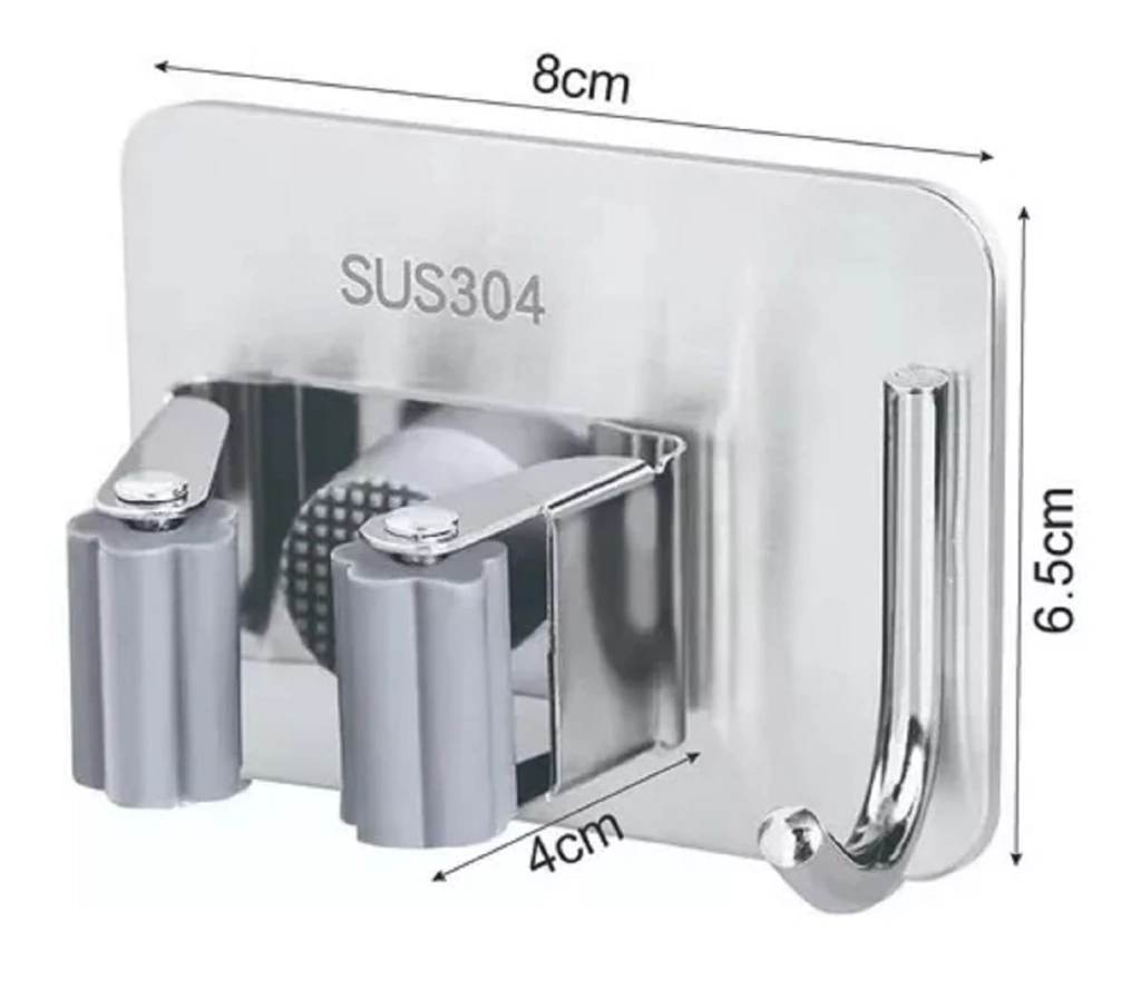 Kit com 2 Suportes de alta qualidade mantém suas vassouras e utensílios de limpeza bem organizados. Fábricado em aço inoxidável durável, o suporte resiste à corrosão e mantém uma aparência impecável por mais tempo. Possui entrada para vassoura e um gancho adicional para itens de limpeza.