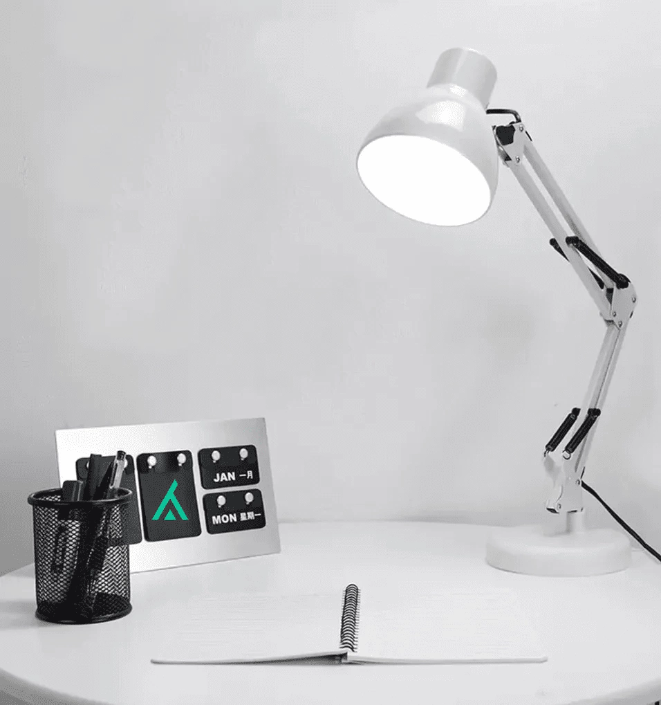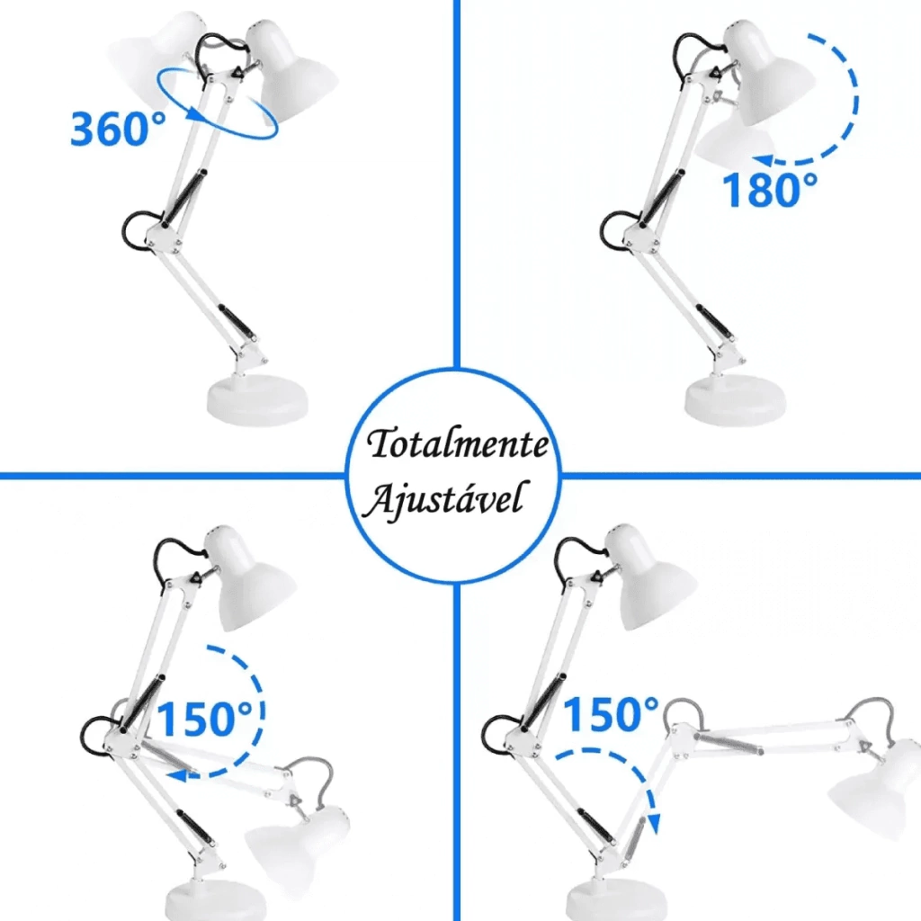 É uma luminária de mesa mágica que definitivamente ilumina qualquer lugar que você desejar, girando com facilidade para cima, para baixo e para os lados.