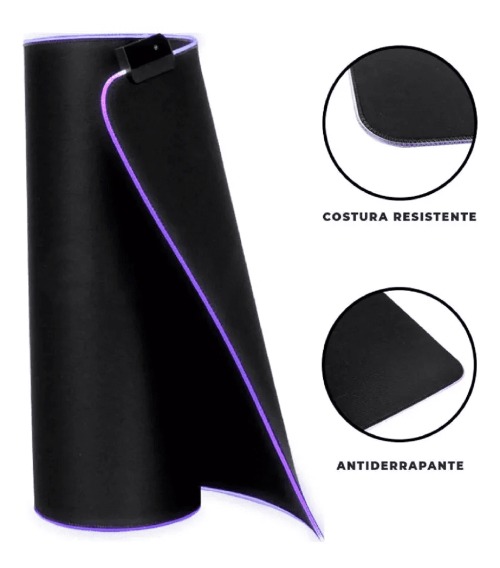 Mouse Pad Gamer 35x25cm Borracha Antiderrapante Iluminado Led RGB