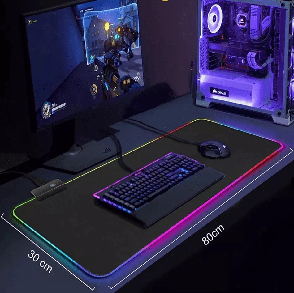 Mouse Pad Gamer 80x30cm Borracha Antiderrapante Iluminado Led RGB