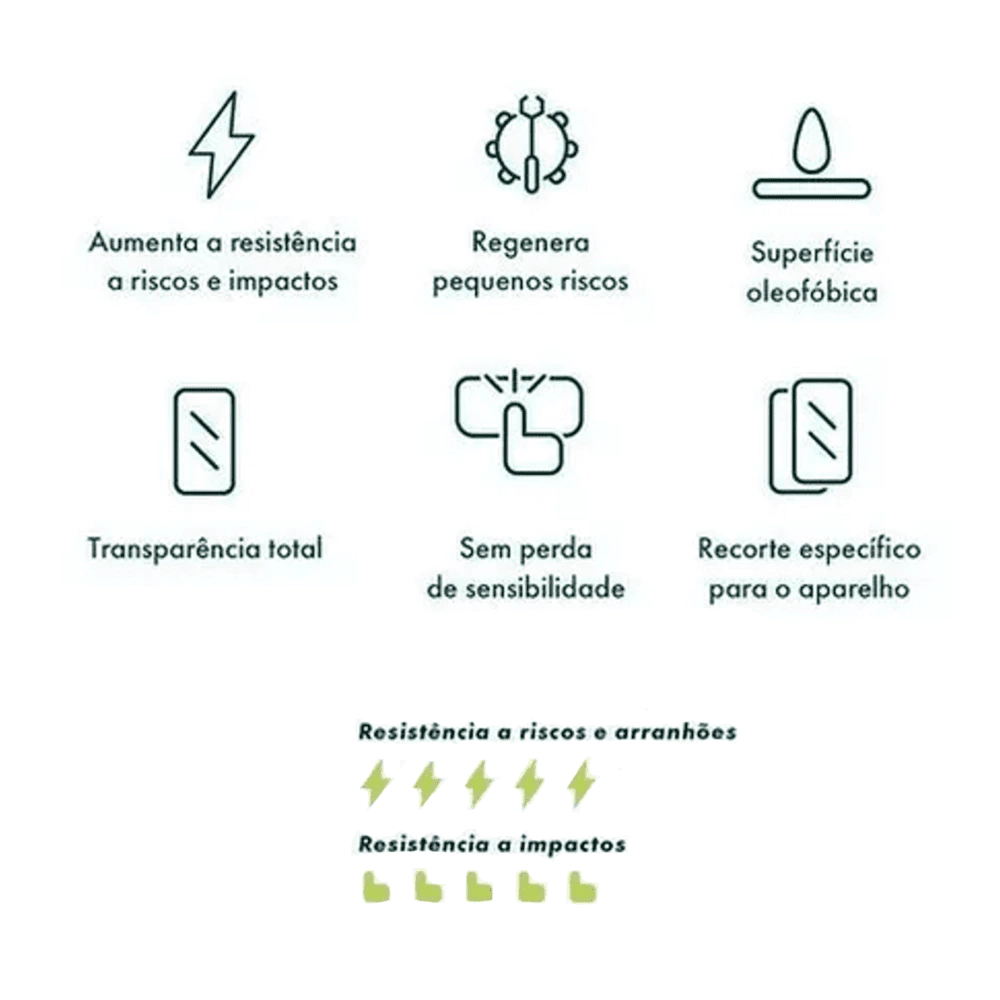 - Com a tecnologia exclusiva auto regenerativa, na pelicula nanoshield pequenos riscos causados por pequenos impactos somem em questao de momentos. Não é magica, é a engenharia nanoshield.