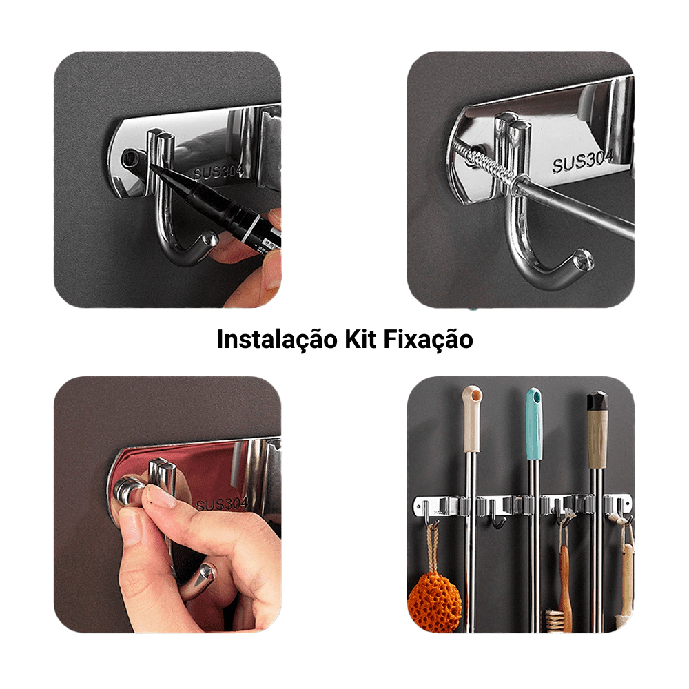 - Modelo: Suporte De Vassoura Com Ganchos Organizador