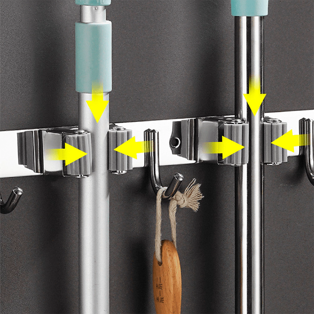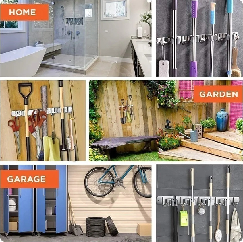 Suporte De Vassoura 4 Clipes + 5 Ganchos Organizador